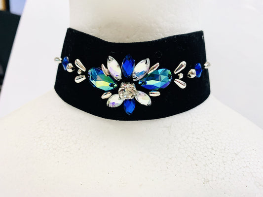 No.49306 【幅広チョーカー】はブラックベルベットにハンドメイド刺繍を施したオリジナルチョーカー