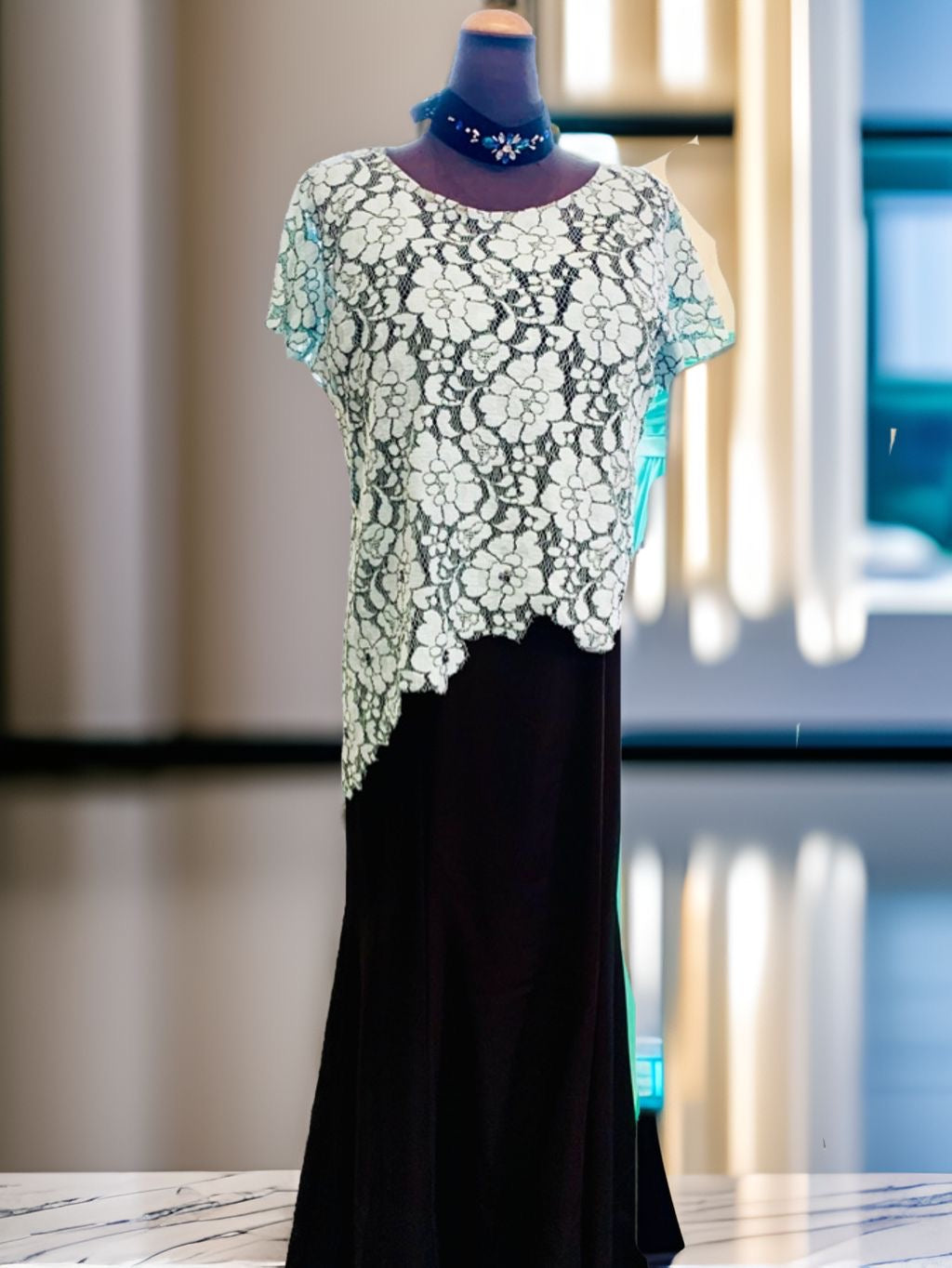 スッキリ見えるが華やかさがあり、下のマーメードドレスを着ていてもお腹回りを意識しなくてもいいセット販売ドレスです。